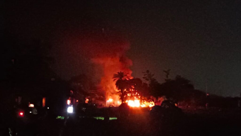 অগ্নিকাণ্ডের খবর পেয়ে দমকলের তিনটি ইঞ্জিন ঘটনাস্থলে পৌঁছে দীর্ঘ প্রচেষ্টার পর আগুন নিয়ন্ত্রণে আনে। তবে প্রশ্ন উঠছে—এলাকার একটি সাধারণ সাইকেল সারাইয়ের দোকানে এতগুলো গ্যাস সিলিন্ডার, পেট্রোল-ডিজেলের মজুদ কোথা থেকে এলো?