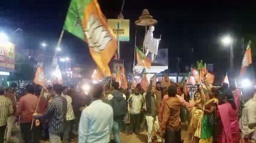 বিজেপির পক্ষ থেকে শহরজুড়ে আয়োজিত হয় একটি বিশাল র্যালি। ৫১২ নম্বর জাতীয় সড়ক ধরে মিছিল এগোতেই পথ জুড়ে জমে ওঠে উৎসবের আমেজ। দলীয় পতাকা হাতে নেওয়া কয়েকশো কর্মী-সমর্থক গেরুয়া আবির উড়িয়ে নরেন্দ্র মোদির জয়ধ্বনিতে গুঞ্জরিত করে তুললেন গোটা এলাকা। মিছিলের সঙ্গে তাল মিলিয়ে বাজতে থাকে ঢাক ও জলসা। পথে যাত্রী ও সাধারণ মানুষের হাতে লাড্ডু তুলে মিষ্টিমুখ করান কর্মীরা।