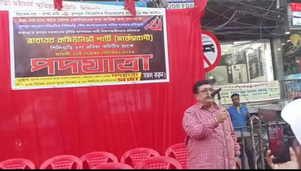 শিলিগুড়িতে আজ সিপিএমের ডাকে অনুষ্ঠিত হলো ১১ কিলোমিটার দীর্ঘ পথযাত্রা। এই পদযাত্রা এবং পরবর্তী পথসভায় সিপিএমের ৪৭টি ওয়ার্ডের কর্মীরা অংশগ্রহণ করেন। সভায় নেতৃত্ব দেন বিশ্বজিৎ নাগ।