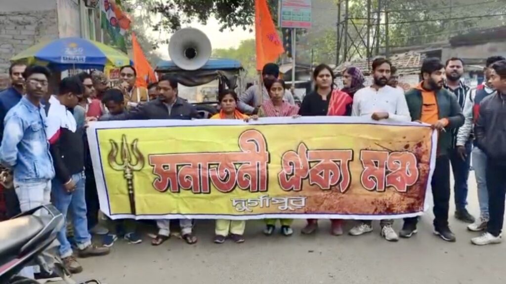 দুর্গাপুর: তৃণমূল কংগ্রেস নেতা মদন মিত্রর বিরুদ্ধে রামচন্দ্রকে মুসলিম বলার অভিযোগ তুলে তীব্র বিক্ষোভে সামিল হল সনাতনী ঐক্য মঞ্চ। পাশাপাশি বাংলাদেশে হিন্দুদের উপর নির্যাতনের অভিযোগ তুলে ইউনূস সরকারের বিরুদ্ধেও প্রতিবাদ জানানো হয়। রবিবার সকাল থেকে দুর্গাপুরের বেনাচিতি পাঁচমাথা মোড়ে পথ অবরোধ করে আধঘন্টা ধরে চলে এই বিক্ষোভ কর্মসূচি, যার জেরে সাময়িকভাবে ব্যাহত হয় যান চলাচল।